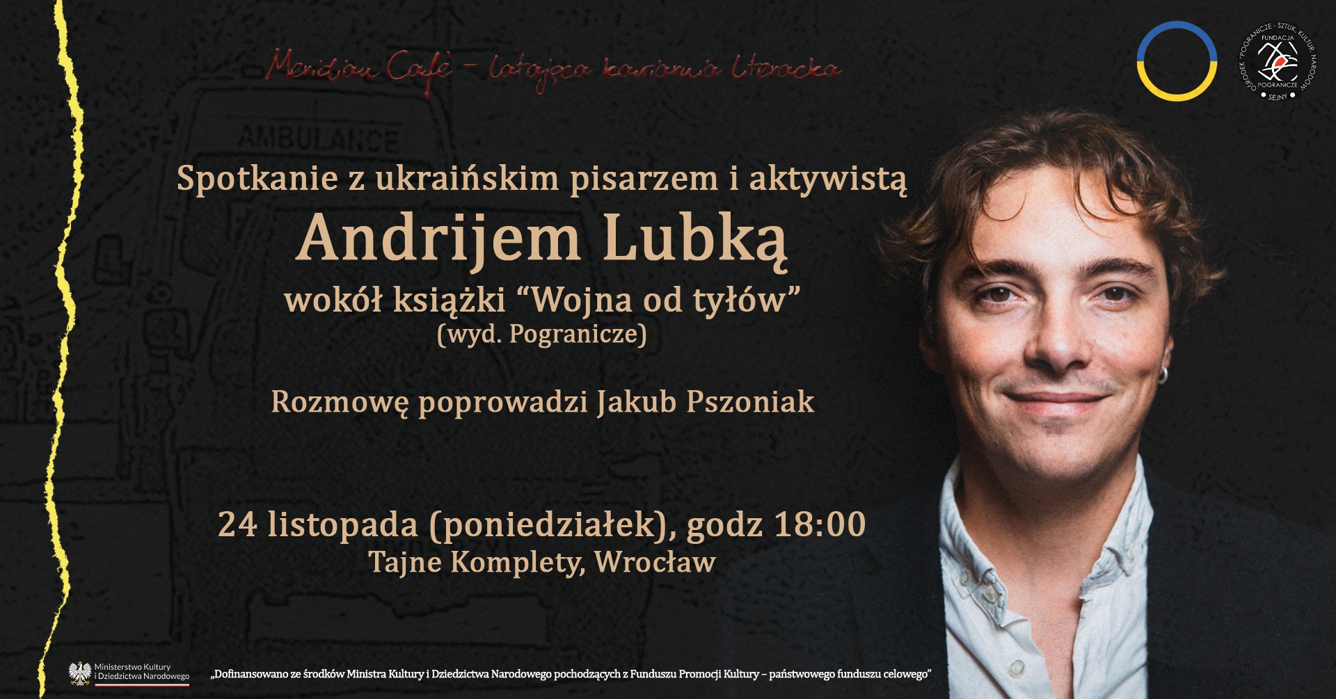 SKN Ukrainistów oraz Fundacja „Pogranicze” zapraszają na autorskie spotkanie z ukraińskim pisarzem i aktywistą Andrijem Lubką, którego książka Wojna od tyłów (tłum. A. Zadury) ukazała się niedawno nakładem Wydawnictwa „Pogranicze”.